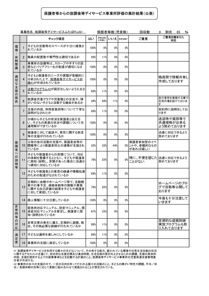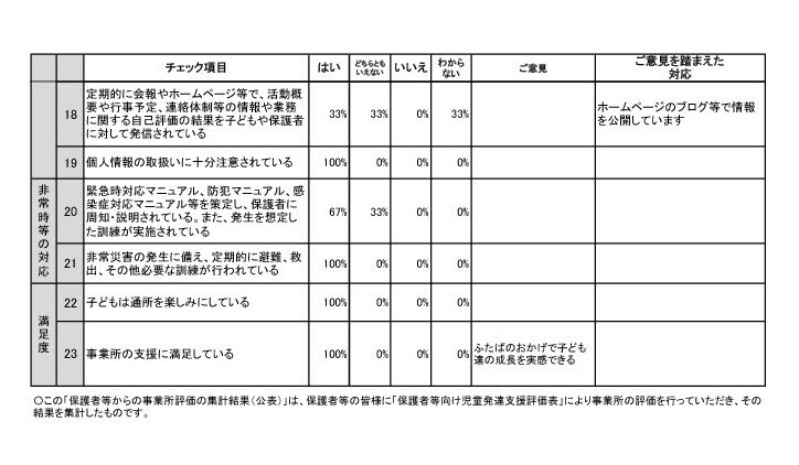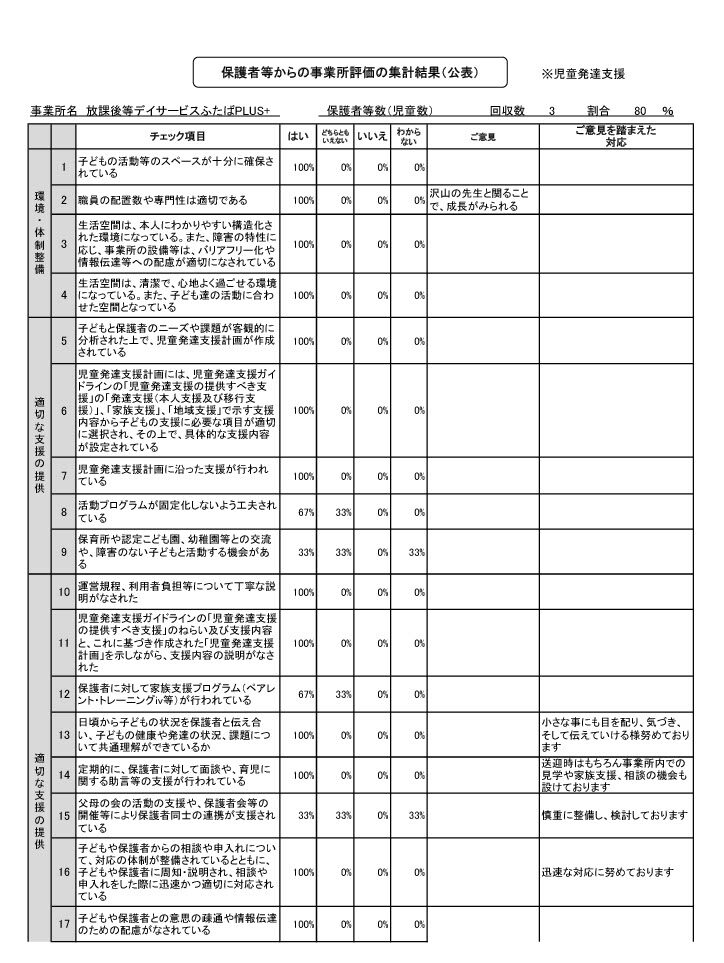 保護者からの事業所評価 放課後デイサービスふたばPLUS+