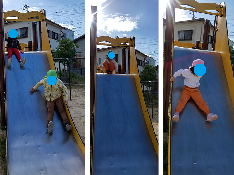そして、滑り台は斜面が急で、なかなかスリルがある滑り台。