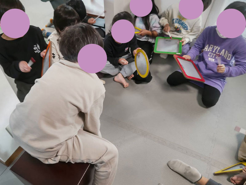先生が〇・□・△と書かれた紙を出すので、持っているサウンドシェイプと同じ形だったら叩きます。
