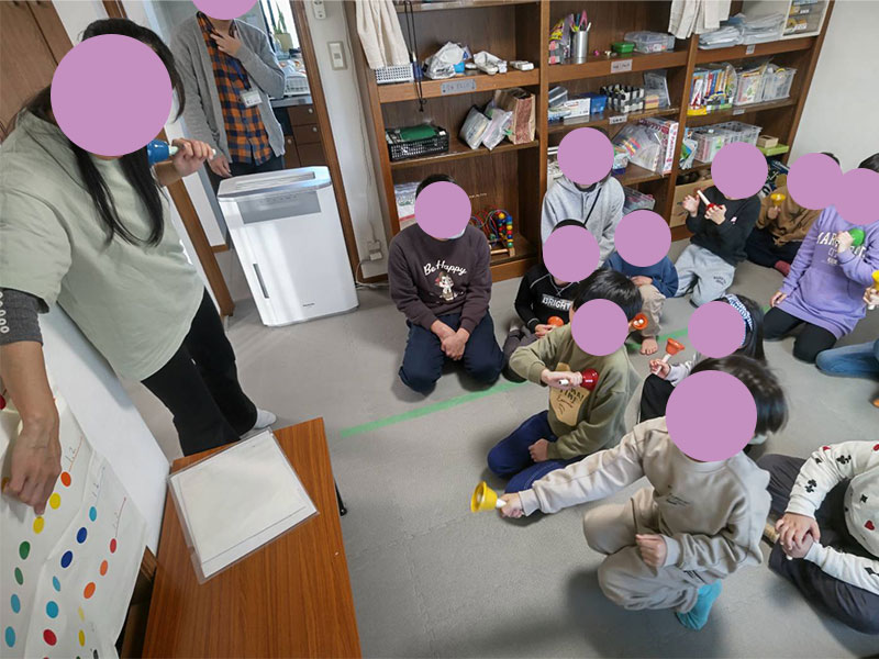 音楽あそびを通して、聞く力・待つ力・集中して取り組む力が育つ時間となりました!