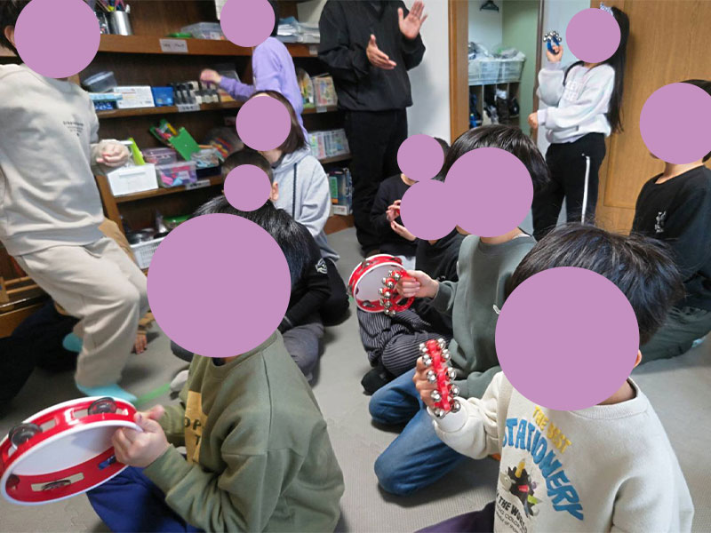 最後は「あわてんぼうのサンタクロース」の曲に合わせて、鈴やタンバリンなどの楽器を使って合奏をしました🎄