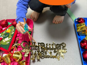 最後は「あわてんぼうのサンタクロース」の曲に合わせて、鈴やタンバリンなどの楽器を使って合奏をしました🎄